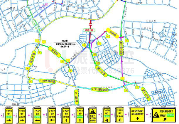 市桥二桥和沙湾大桥封闭施工前,交警大队提前在外围路段增加施工绕行标志提示,有效引导市民提前绕行。