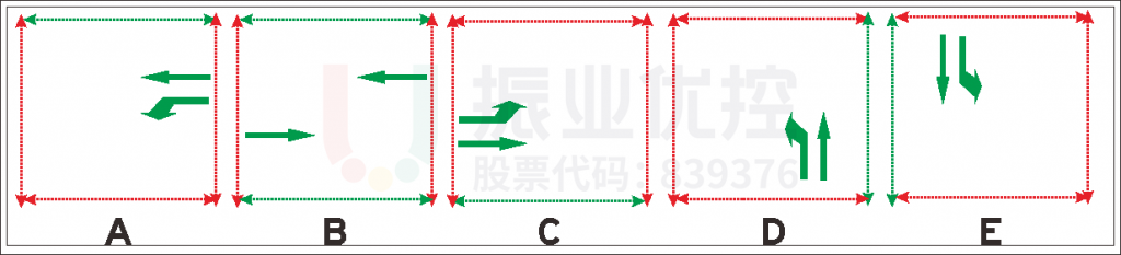 在可变车道实施之前,交叉口东西进口方向直行和左转分开单独放行,导致东进口左转排队较长。对此采取搭接一个东进口单独放行相位,保障方案实施后车辆进入可变车道后能够及时清空,以及左转车流的通行安全。