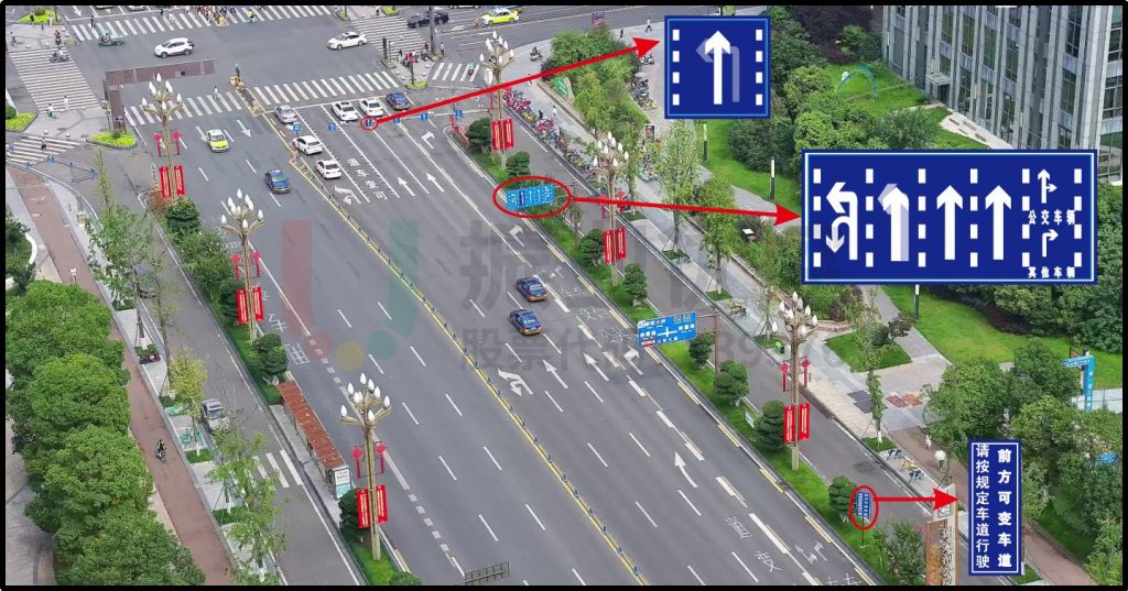 (2)加装LED可变车道专用指示标牌,同时变更分道行驶指示牌信息