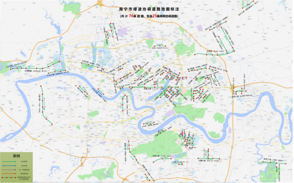 对江北大道和五一路等10条道路实施“绿波带”道路优化,道路通行时间平均缩短32.2%,行车速度平均提高31.6%。截至目前,南宁共设计实施了88条绿波协调道路,涉及291个路口,绿波协调控制里程突破145公里,并探索出五种协调控制模式,有效提高道路通行能力,极大方便了群众出行。