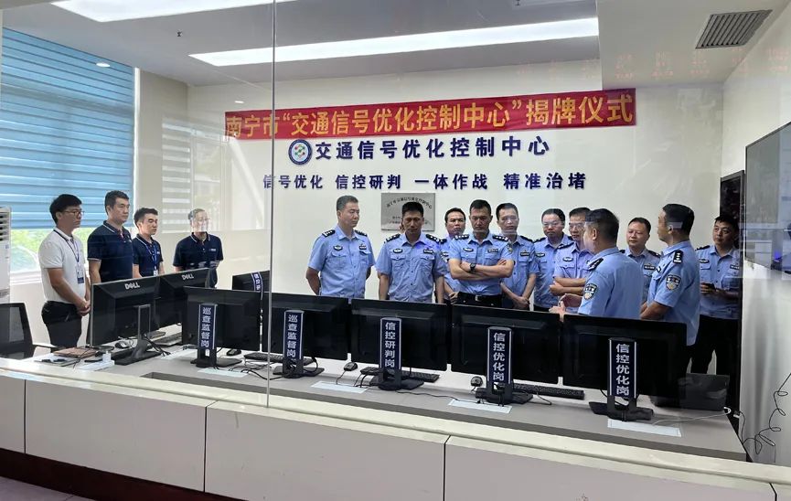 2022年6月22日,广西首个交通信号优化控制中心在南宁市公安局交通警察支队正式揭牌。南宁市公安局交通警察支队政委孙志宇、副支队长罗建东、指挥中心主任陈茜、科研所所长李子龙、广东振业优控科技股份有限公司副总裁/研究院院长洪波、交通技术部副总监陈宇等人参加了揭牌仪式。