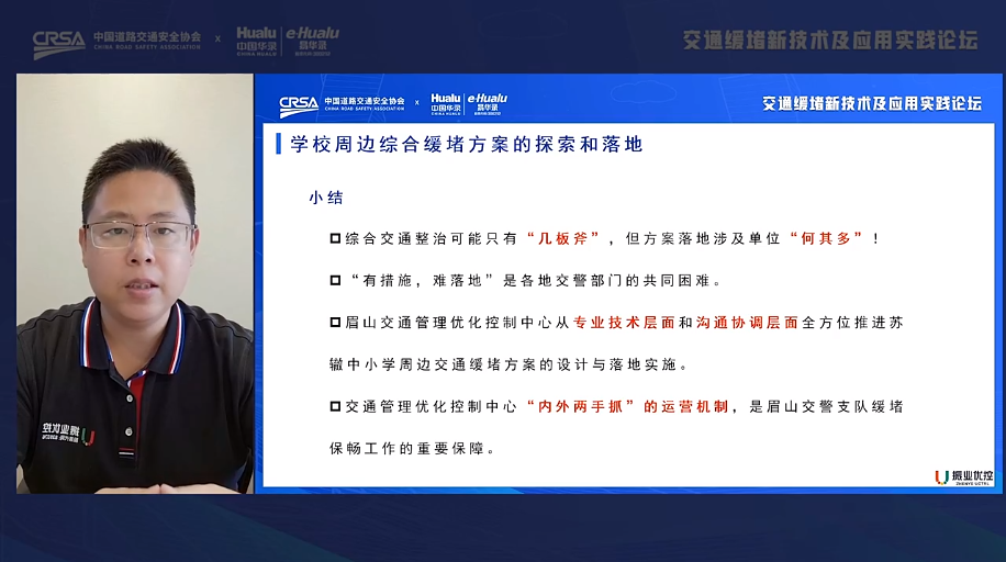 我司CEO陈宁宁博士受邀参加并发表了主题为“学校周边综合缓堵方案的探索和落地——以眉山苏辙中小学为例”的演讲,他围绕苏辙中小学周边交通拥堵问题,剖析了缓堵方案形成到落地的全过程。