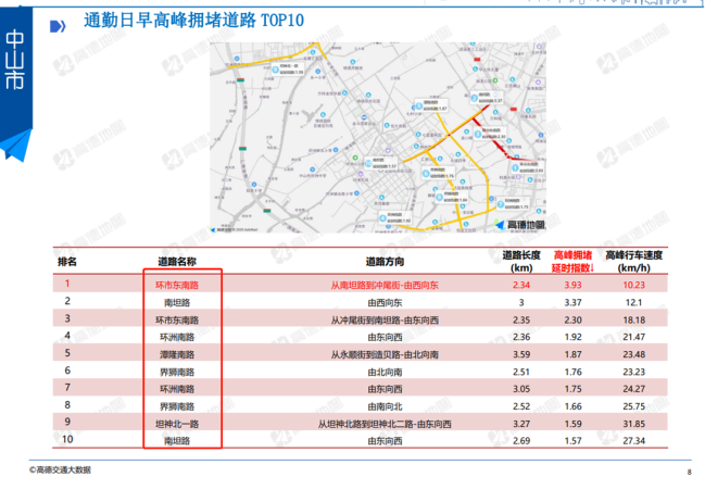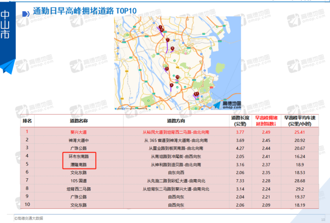 根据高德智慧平台2020年发布的中山市第三季度交通分析报告,中山市早高峰拥堵道路前十名坦洲镇区占据10条。交通信号配时中心成立后,2021年第三季度中山市早高峰拥堵道路前十名坦洲镇区仅占2条。