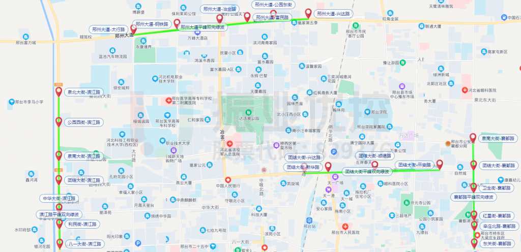邢州大道、滨江路、襄都路为市区外围主干道,团结大街为市区主要通勤主干道。四条路段的车道较宽,路段条件较好,承担着早晚高峰主要交通流。