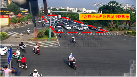 受安居路、金凤西路小区入住率提升的影响,早晚高峰时段金凤西路进城车流增大。原路口配时方案不能满足如今通行需求,西往东方向存在2次排队现象。