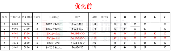 方案7:00至18:30时段方案单一,早高峰时段方案跟平峰时段方案一致,不能满足各时段车流变化情况,导致各时段存在拥堵现象。
