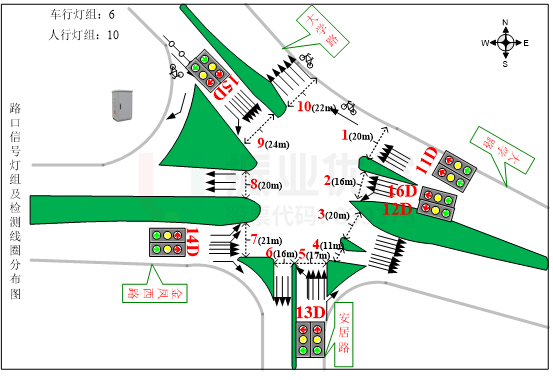 安居路邻近金科、金茂等四个小区及水产品交易中心,随着各小区入住居民的增加,晚高峰时段左转前往金凤西路及安居路车流增大。现有的一条左转车道已处于超饱和状态,导致东进口左转车辆存在多次排队,拥堵严重。
