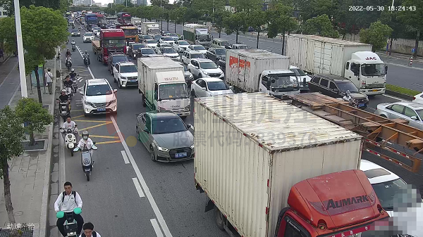 该路口周边分布产业园、学校等多个交通吸引点,较多大型货车、公交车、非机动车途径,全天东西向车流均较大。