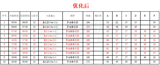 综合路口全时段各进口流量情况,精细化路口早、平、晚及夜间时段方案,提高路口各进口通行效率。