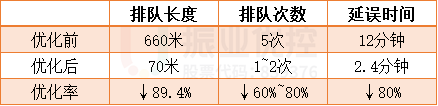 优化后,消除了右转车与非机动车的影响,主路通行更加顺畅;车辆排队等待次数和延误时间明显减少,优化效果明显。