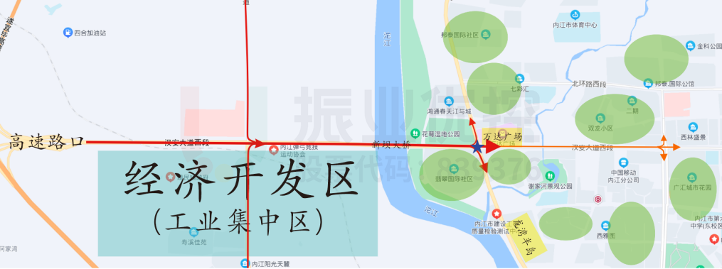 汉安大道与兰桂大道交叉口位于城市核心区西端,是汉安大道与兰桂大道两条城市主干道的交通转换节点,周边业态复杂、商住集中,交通吸引点繁多,紧邻万达广场、龙湾半岛、内江会展中心等大型商业活动中心;500米半径内集中了近20个住宅小区,同时学校、医院、市场等配套建设较为成熟,区域路网及主次干道既承担通过性交通功能,也符合生活性(到发性)交通特征,路网以各功能区为中心的向心交通、潮汐交通现象较为突出。