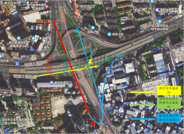今年2月份对友爱立交桥底路口进行结构上的优化调整后,进、出立交的车辆能够顺畅衔接起来,已基本满足路口通行需求,优化效果良好。