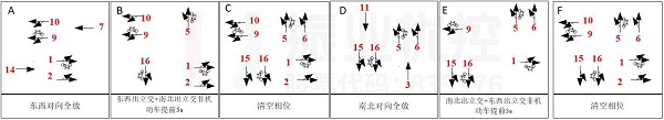 放行结构调整为“东西对向全放-东西出立交+南北出立交非机动车提前-清空相位(4个方向出立交)-南北对向全放-南北出立交+东西出立交非机动车提前-清空相位(4个方向出立交)。”