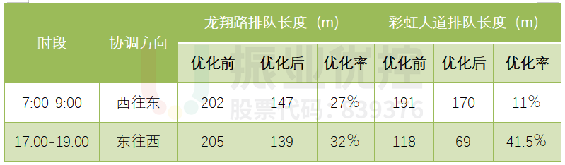 经优化后,晚高峰世纪大道-彩虹大道东进口与世纪大道-龙翔路早高峰排队长度明显降低,路口拥堵情况改善明显。
