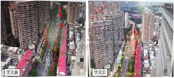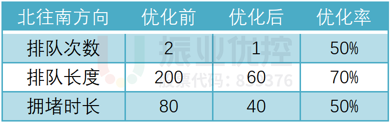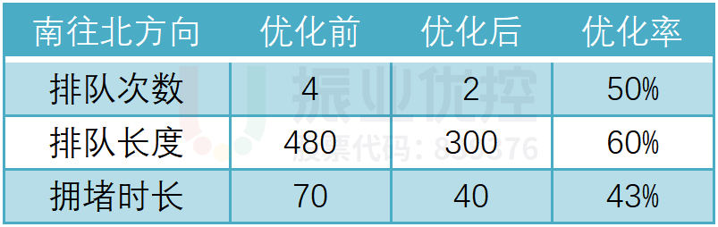 经优化,路口拥堵时长由原本70分钟减少为40分钟,排队次数由4次减少为2次,排队长度也有明显的下降。