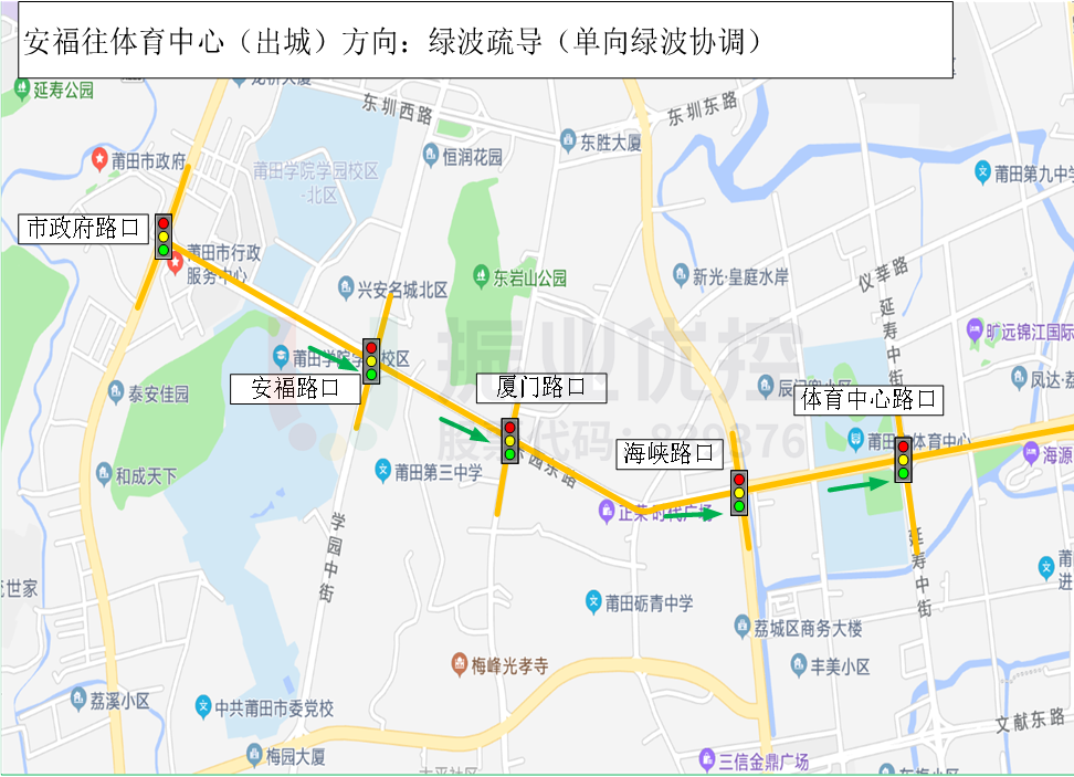 (3)荔城大道路段出城方向(台酒往检察院)实施绿波协调,优先出城方向车辆。