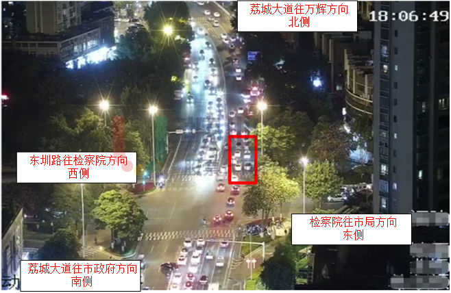 荔城大道(市政府-下郑路口)路段南北直行方向车流量较大,目前已属于饱和状态。在不改动现场设施设备的情况下,对该路段进行“点-线-面”优化,以检察院路口、溪南路口为关键路口,结合路口精细化调优和路口渠化改造,有效提高路口通行效率,降低路口空放;再通过红波截流与绿波疏导相结合,降低路口饱和度,最后以“缓进快出”原则均衡控制区域车流。