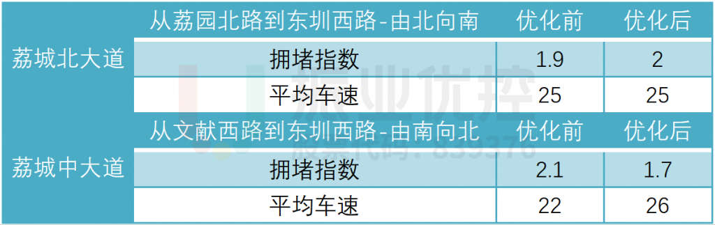 另外,从高德数据可得,进行红波截流和绿波疏导后,荔城大道(南往北方向)路段拥堵指数由2.1降低至1.7,达到疏导的效果;荔城大道(北往南方向)路段拥堵指数由1.9上升为2,起到截流效果。
