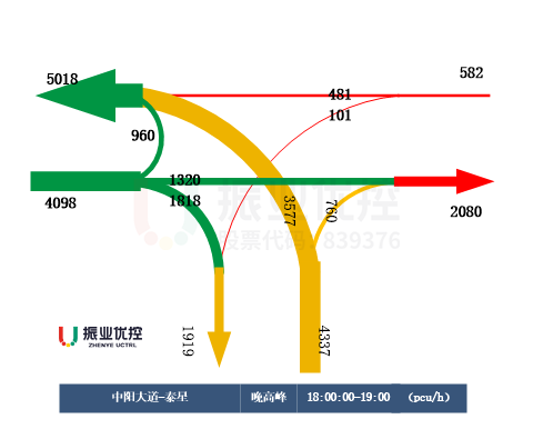通过路口相序调整,提高东直行绿信比,使东进口车辆排队1次通过路口;通过行人晚启动,解决南左转机动车尾车与行人冲突;通过西进口重复放行缓解西右转、西掉头受阻情况,提高通行效率,排队长度由600m下降至250m,排队次数由原4次降至2次。