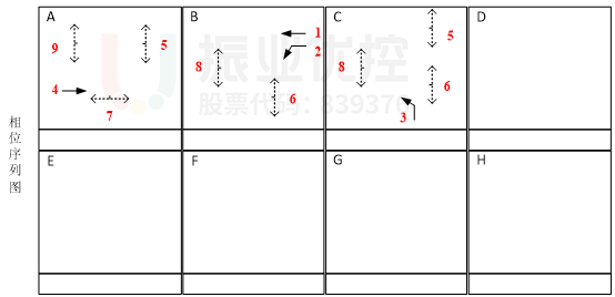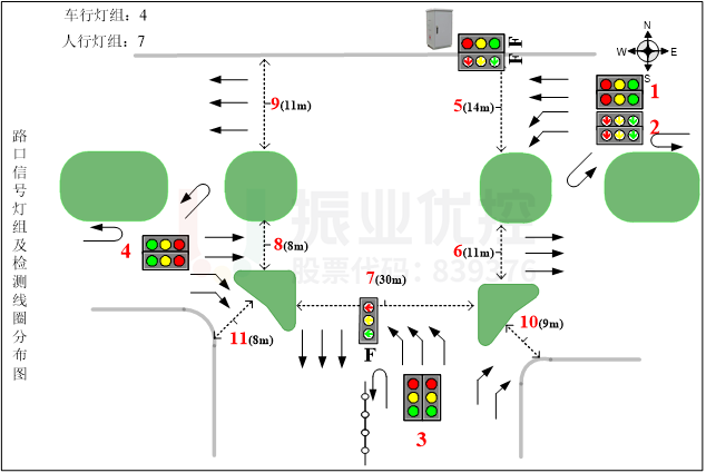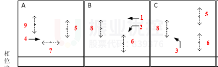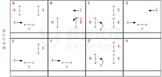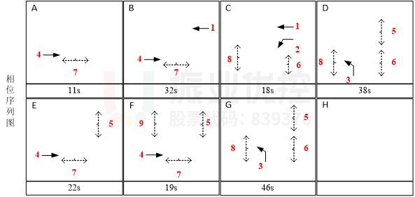 (3)E-F相位:有效解决西直行排队长相互阻挡、车流离散的问题。如下图所示: