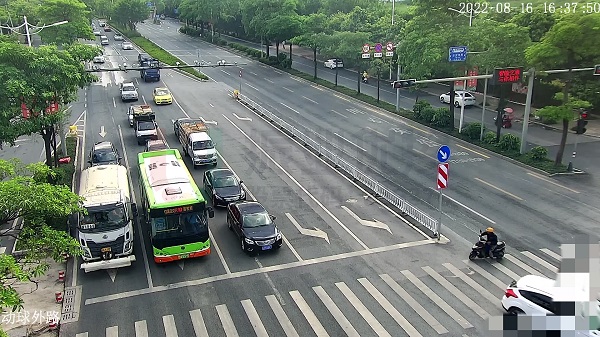 (2)小区大门车道不足,仅2条车道且车道狭窄,导致西左转车辆消散缓慢,经常出现左转进入小区车辆反堵至路口的情况,造成路口整体通行效率低下。