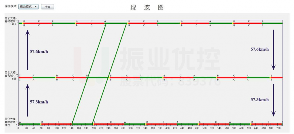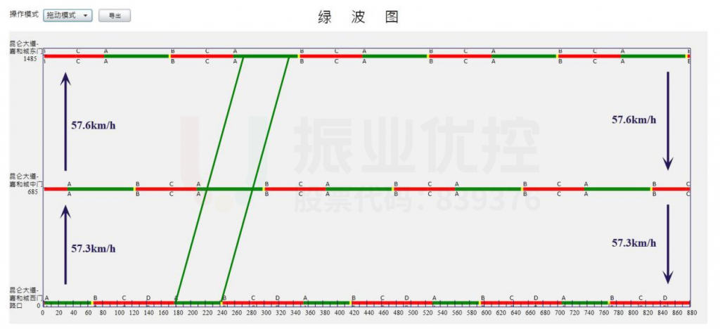 因该路段主要行车方向早高峰为东往西进城方向,其他时段为西往东出城方向,且路段无特殊管控需求,可根据市民出行需求设置绿波协调方案。