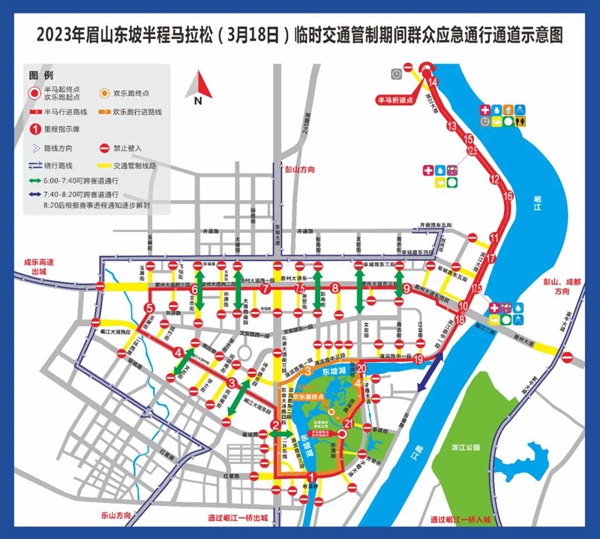 赛事当日上午6:00至12:00对相关区域实行临时交通管制,管制区域内的眉州大道是眉山市主城区东西向进出城的唯一通道,且内有市人民医院和肿瘤医院两所重点医院。
