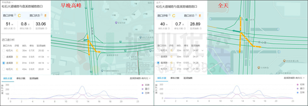 高德平台数据显示,从柏树堡立交往石马河立交方向,高峰时期通行时间从原来15分钟降低至2分钟;从南桥寺立交往大石坝立交方向,高峰时期通行时间从原本10分钟降低至3分钟,路口整体通行效率提升约73%。