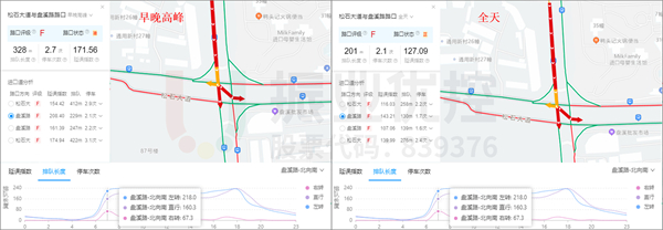盘溪路-松石大道平交路口各流向平均排队长度约51米,较改造前下降227米;平均停车0.8次,较改造前下降1.9次;延误指数为33.06,较改造前下降138.5。