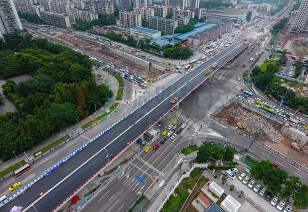 随着城市的快速发展、交通骨架路网的扩张、交通提质增效工作的推进,较多超饱和流量平交路口需要结合实际通行量进行立交化改造,改造期间因地理位置突出、交通转换节点、施工时序多变等因素,对辐射区域的交通影响较大,引发一系列交通“阵疼”。