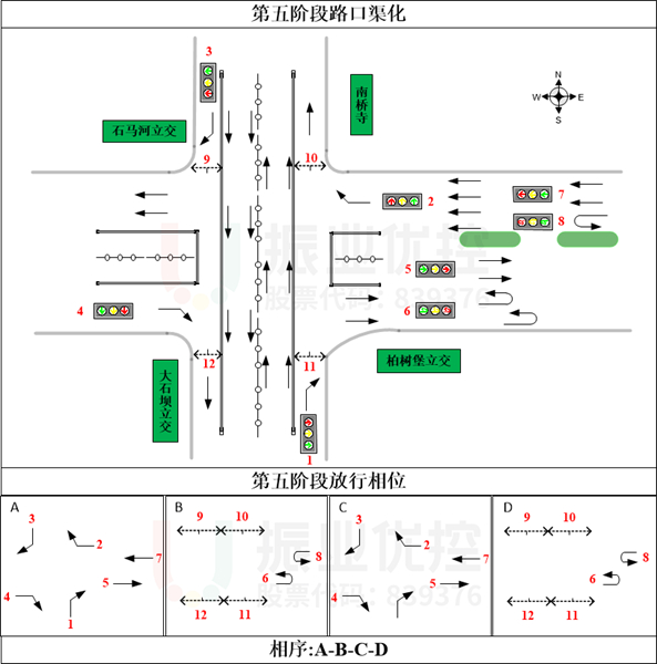 2022年4月,根据工程施工进度(下穿道与平交路口中央区域施工),路口交通组织再次发生变化,随即根据道路通行条件和交通流量流向的变化调整配时方案与放行方式。