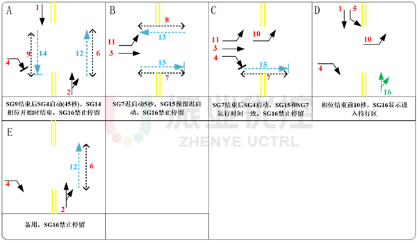 根据交叉口增设非机动车信号灯及直行待行区控制,结合原放行方式对相位方案进行调整: