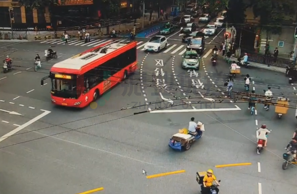 交叉口靠近北京路步行街,日常非机动车通行需求较大,由于前期未对非机动车通行进行有效管控,导致非机动车通行较为随意,机非混行现象明显存在冲突,对机动车的行驶造成一定干扰,导致机动车通行缓慢,偶尔出现机动车滞留路口的情况。