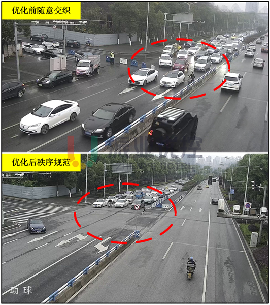 两江新区交巡警支队组织配时中心展开专项研究,针对金州大道-肖家沟南路路口交通组织不合理,两路口间距过近缺乏联动控制等问题,本次调整通过交通组织和配时一体化优化的方式,采取一机双岗联动控制、调整车道和路口流向等手段,提高路段整体通行能力。