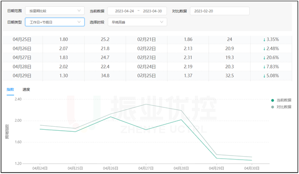 改造后,金州大道-平乐路路口通行能力得到大幅提升。高德数据平台显示,路口高峰拥堵指数周环比降幅明显,最大环比下降20.6%。