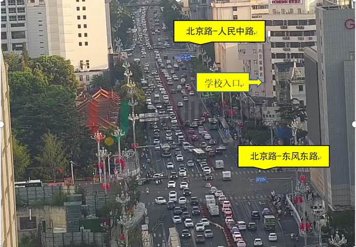 以北京路-人民路、北京路-东风东路、白塔路-人民中路、白塔路-东风东路四个一环节点路口为例,一方面,提前下发学校周边路口的早晚高峰方案;另一方面,强化值班值守工作,配合指挥中心与路面警力对周边车辆通行秩序进行管理,及时处理突发情况。