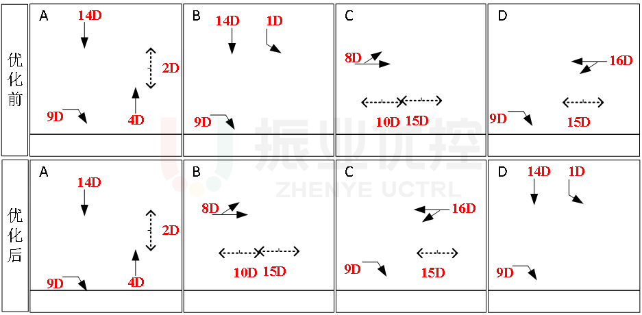 图4 金开大道-鸳鸯北路相位调整对比