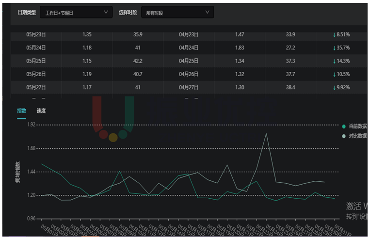 全天拥堵延时指数下降明显,平均指数下降10%以上,效果良好。