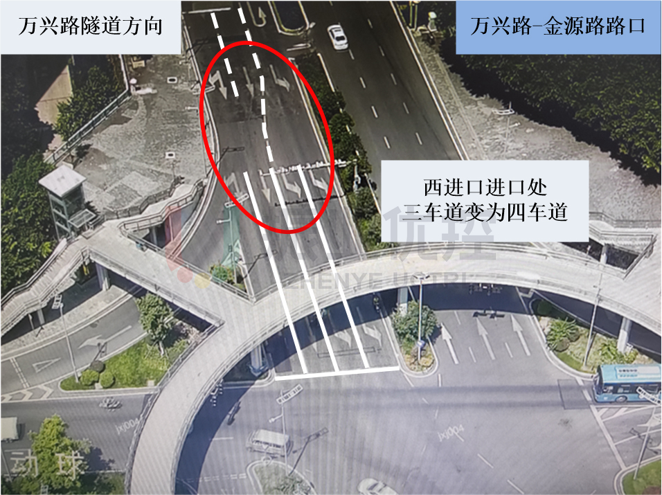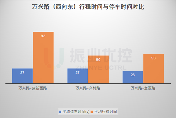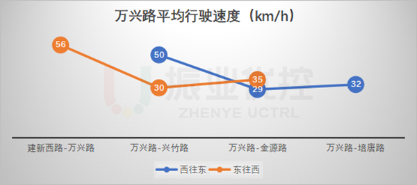 由于路段信号灯路口未进行协调控制,加上道路环境复杂,如万兴路-金源路路口西进口存在路段瓶颈(三车道变四车道)、行人横穿马路与非机动车随意闯红灯等现象频发,导致路段平均车速较慢。