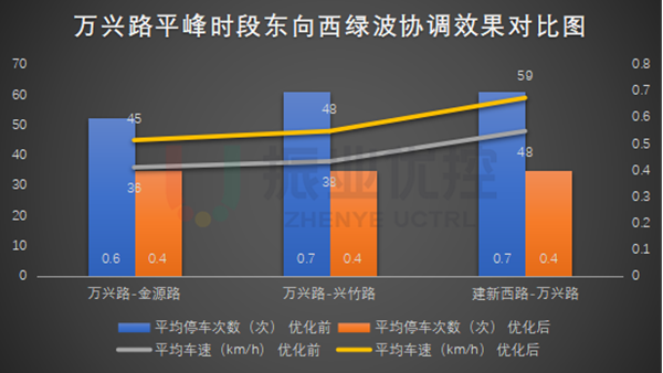 互联网数据平台显示,路段绿波效果明显,全路段双向平均停车次数西往东从2次降低为1.4次,东往西从2次降低为1.2次;西往东平均速度从37.7km/h提升至44.0km/h,东往西从40.7km/h提升至50.7km/h,有效节省了市民的出行时间。