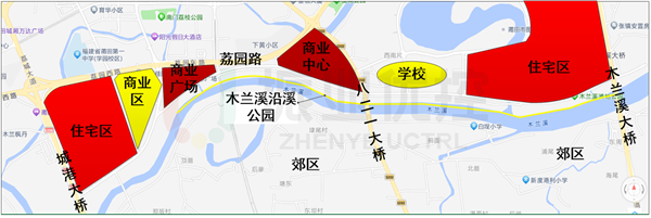 2.道路沿线交通环境较为复杂,周边有大量住宅区、公园及多所学校等交通吸引点,且道路分支开口较多,通行干扰较大,也存在车流量不均衡、车流交织严重的情况。