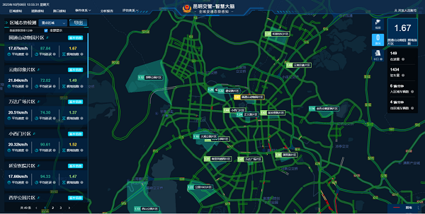 双节期间,昆明交警支队配时中心,借助“昆明交管·智慧大脑”,对出入城车流实现精准预测,通过提前设计交通疏导方案、落实假期间的交通流监控及疏导工作,有效缓解了城区拥堵情况,为广大市民出行营造了良好的交通环境。
