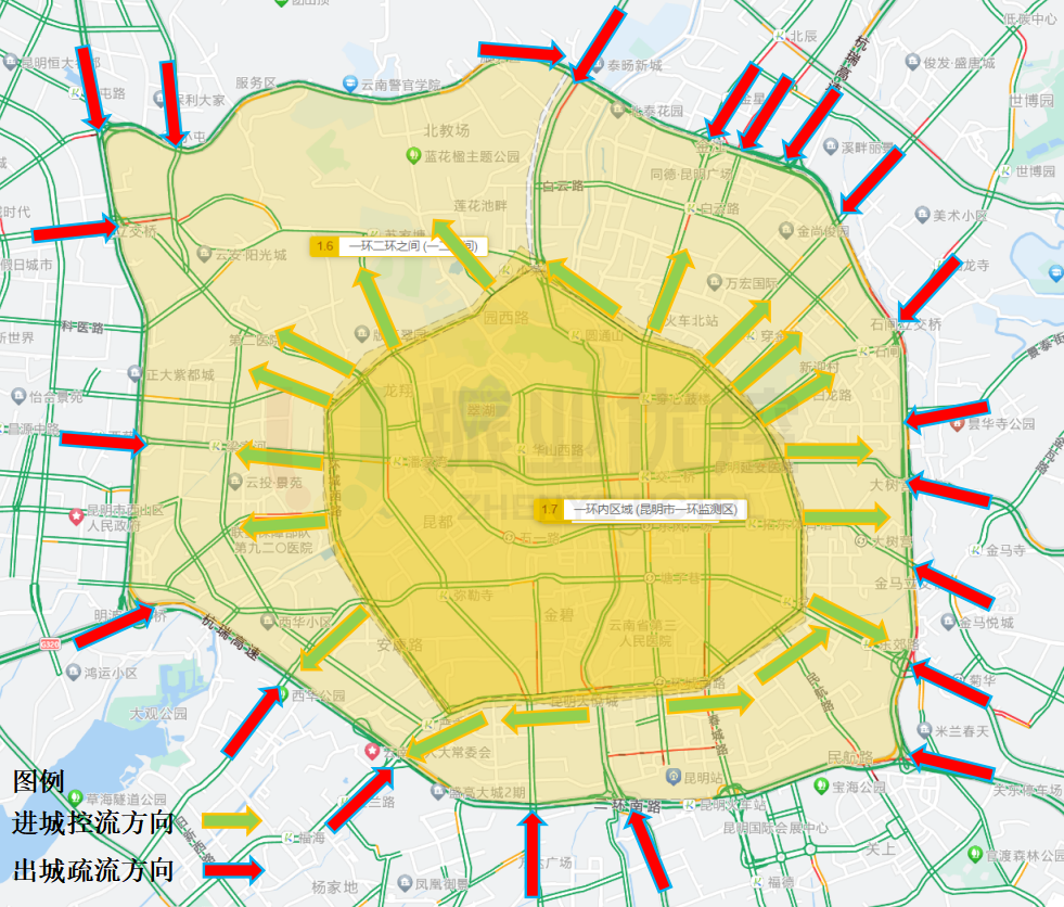 配时中心根据“昆明交管·智慧大脑”,预测交通流变化趋向。依据预测结果,对城区主干道交汇路口、高速出入信控路口、重点商圈与学校片区共计70余个路口设置节假日预案,缩短高峰拥堵持续时长,保障进出城车流有序消散,缓解道路交通压力。