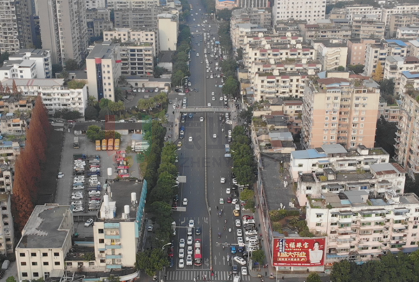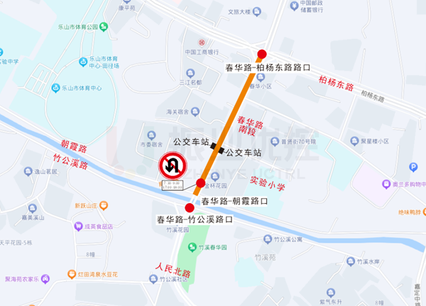 春华路是连接柏杨坝片区与老城区的重要道路,高峰期南段过境通勤交通流压力较大。乐山市实验小学位于柏杨坝片区春华路南段东侧,路段上下学接送需求大,过境通勤与接送车流重叠导致路段高峰期拥堵较为严重。