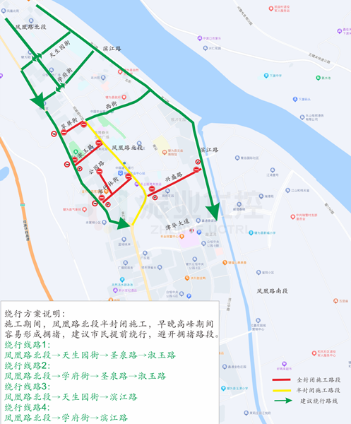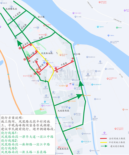 绕行线路2:凤凰路南段→麻柳路→滨江中路
