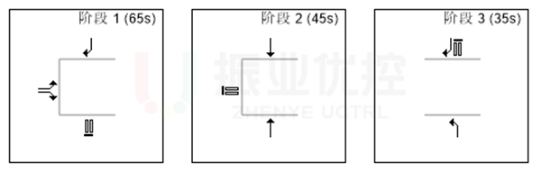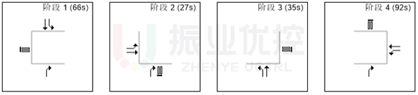 (4)北右转机动车与西北角渠化岛行人和非机动车设置交替放行;取消东西对向全放相位,保障通行安全。