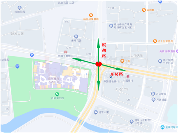 - 路口概况:路口位于青秀区万达广场东侧,周边有小区、商圈、办公楼等,日常行人、车辆通行流量大。