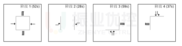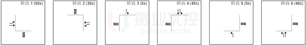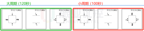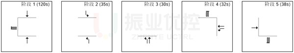 - 路口概况:路口周边分布多个大型住宅小区、公园、学校和行政办公区,日常车流量较大,由于各方向道路空间较小,采用“东西对向全放、南北对向全放”两相位放行。