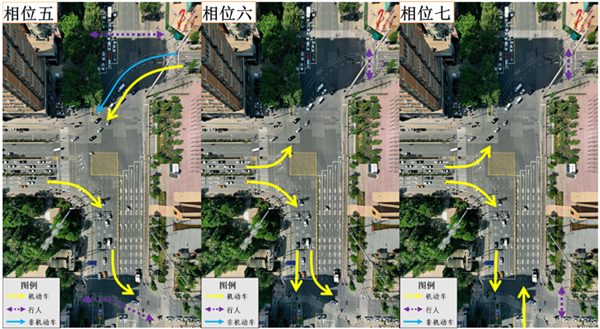 2.信控配时精细化:增加南向西左转、东向西直行非机动车专用放行相位,南向西左转车流设置二次放行模式清空中央二次待行区排队车辆,同时根据路口不同时段的交通特性重新细化时段,提升信号配时与交通流量的匹配度。