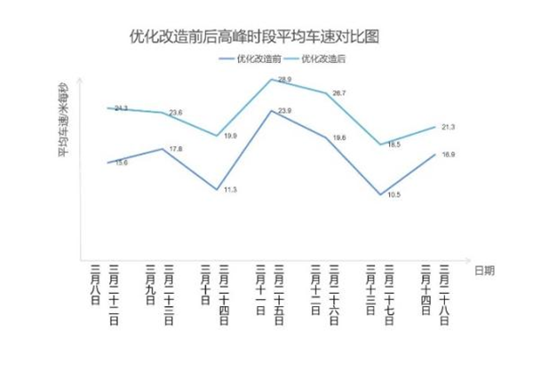 优化效果:双休日、节假日期间片区路网拥堵指数下降26.9%,拥堵时长缩短16.98%,平均车速提升31.4%。